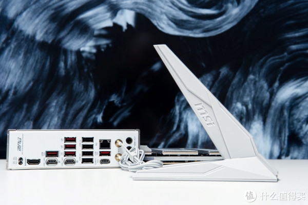 微星MPG X870E EDGE TI WIFI刀锋钛支持满血WiFi7,最高传输速率可达5.8Gbps,其鲨鱼鳍磁吸天线也做了白化处理,接口处同样支持磁吸快拆。