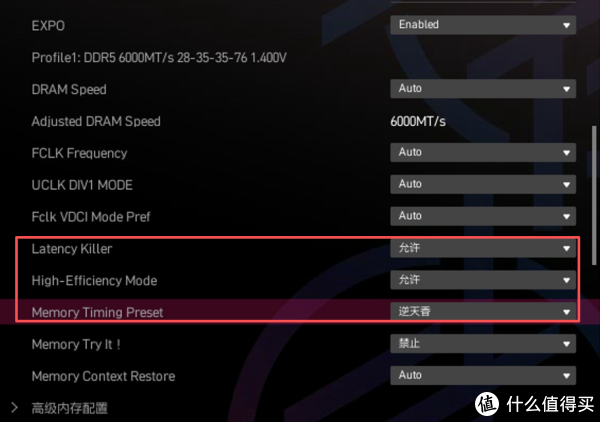 内存这里,微星MPG X870E EDGE TI WIFI刀锋钛也提供了高带宽低时序功能,其中时序模式最高为【逆天香】,命名简单粗暴。
