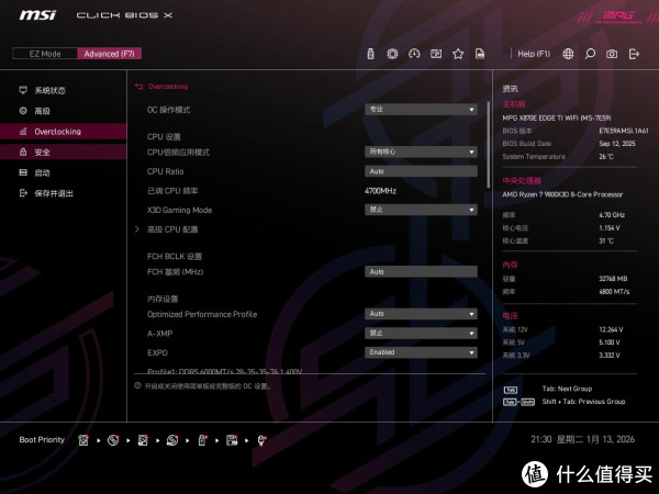主板:微星MPG X870E EDGE TI WIFI刀锋钛
