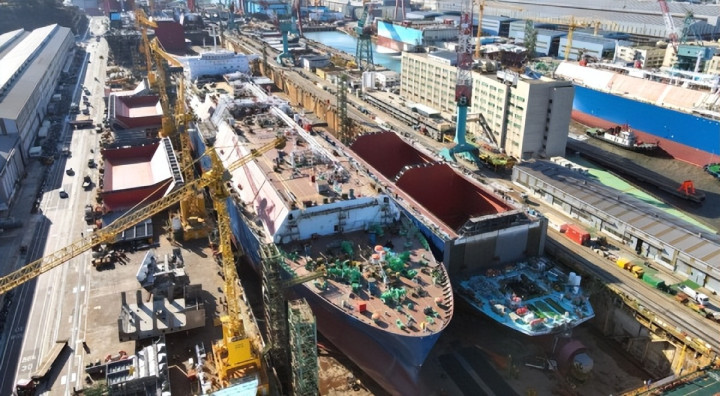 韩国船企去年共承接247艘1160万CGT,同比增长8%(按CGT计),占全球新船订单的21%,排名第二;订单总额404亿美元。其中,三大造船企业表现出色,合同总金额达到352亿美元(约合人民币2453亿元),坚持优先考虑收益性的选择性接单策略,重点聚焦LNG(液化天然气)船、大型集装箱船等高端细分市场。