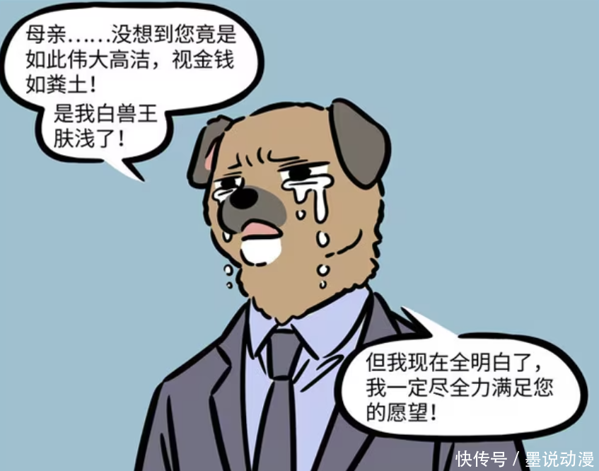 听到白泽这样的愿望,白兽王泪流满面。没想到母亲是这样的人,如此伟大高洁、视金钱如粪土。白兽王觉得是自己肤浅了,他已经明白接下来该怎么做。白兽王要尽全力去满足白泽的愿望,那么他会怎么做?